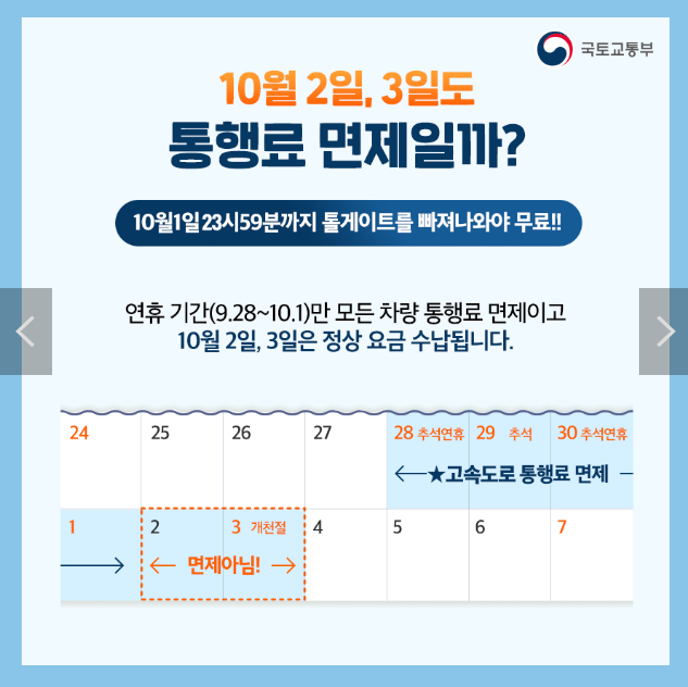 10월 2일, 3일도 통행료 면제일까?