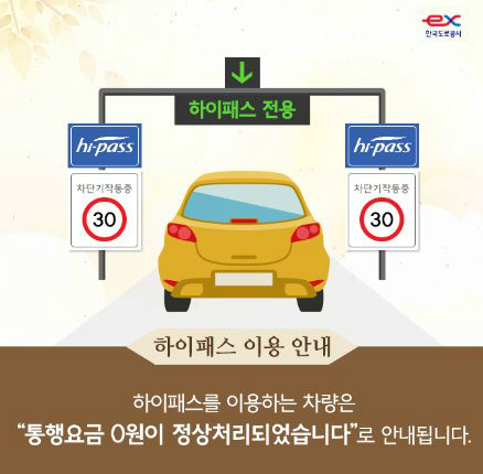 일반 차로 이용자는 고속도로 진입 요금소에서 통행권을 발권하고, 진출 요금소에서 통행권을 제출하면 즉시 면제 처리 됩니다.