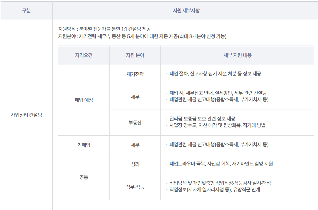 폐업철거지원은 철거 지원뿐만 아니라 사업 정리 컨설팅, 법률 자문등 다양한 분야에 도움을 받을 수 있습니다.