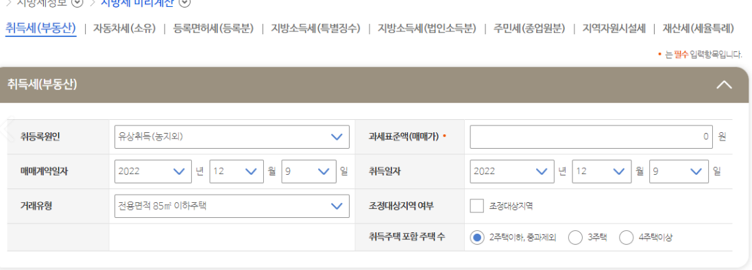 그렇기 때문에 위택스에서 제공하는 취등록세 계산기를 이용하면 취등록세를 쉽게 계산할 수 있습니다.