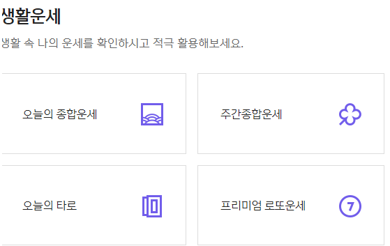 생년월일을 선택하면 오늘, 내일, 이달, 신년운세를 무료로 볼 수 있기 때문에 가볍게 보고 싶은 분들이라면 이용해 보시기 바랍니다.