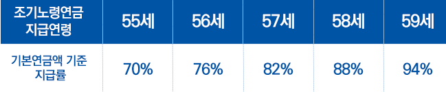 즉, 원래 국민연금 수령나이보다 최대 5년 일찍 받을 수 있다는 것입니다.