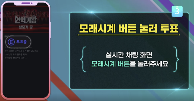 현역가왕 LIVE 화면에서 투표중 버튼을 눌러줍니다.