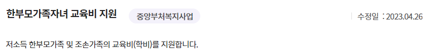 또한, 청소년 한부모가족이라면 아동양육비 외에도 학업을 할 수 있도록 교육비 지원도 받을수 있습니다.