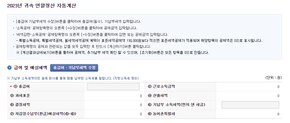 국세청 연말정산 자동계산 (계산기)