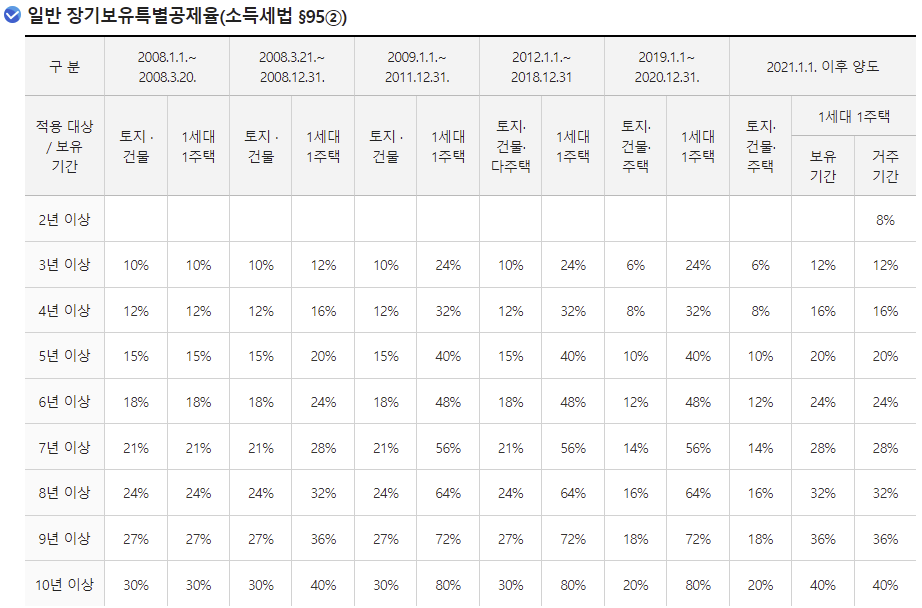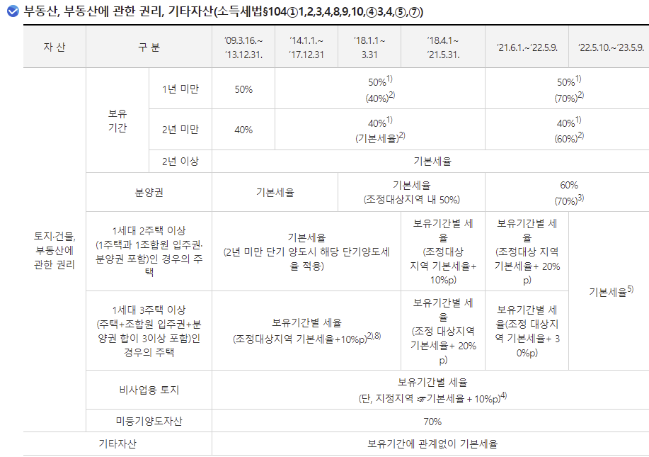2년 미만 토지를 보유했을 경우 세율은 동일하지만, 그 이상 기간 토지를 보유했을 경우에는 비사업용 토지는 사업용 토지보다 10% 더 높은 세율이 적용됩니다.
