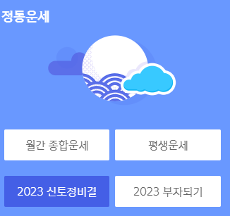 그렇기 때문에 생년월일, 태어난 시간을 최대한 정확하게 입력해야 최대한 정확한 운세를 확인할 수 있습니다. 운세와 함께 토정비결도 볼 수 있기 때문에 함께 운세를 확인해 보시기 바랍니다.