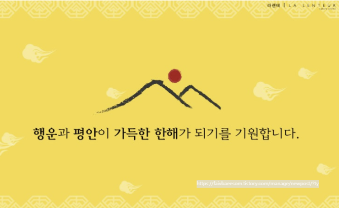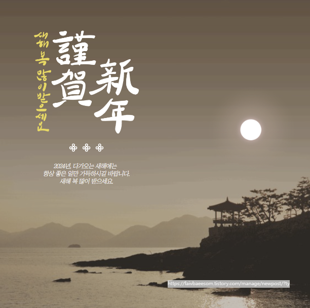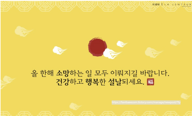 - 즐거운 설 명절 새해의 좋은 기운 받으시고, 2024년도 승승장구하는 한 해 보내시길 기원합니다. 2024년에는 원하시는 꿈과 희망을 모두 성취하시는 한 해가 되시길 바라며 언제나 응원하겠습니다.