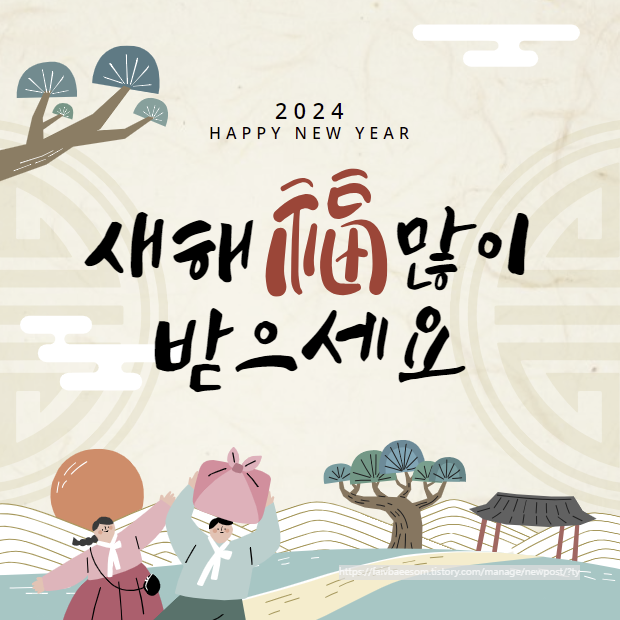 - 새해 복 넘치게 받고 올해는 너의 한 해가 되길 바랄께! 원하는 일 꼭 다 잘풀릴거야, 2024년 따뜻하고 행복한 설날 보내~