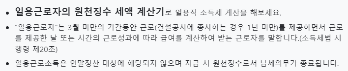 일용직 소득세를 간편하게 계산하고자 한다면 일용직 소득세 자동계산기를 활용해 보시기 바랍니다.