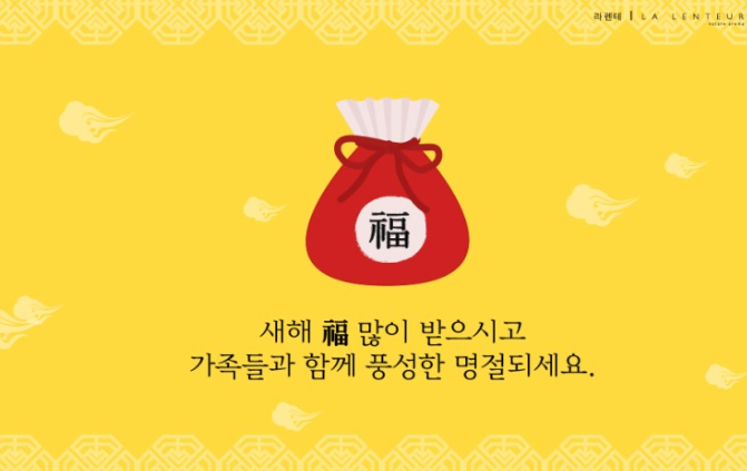 - 즐거운 명절 설날을 맞아 새해 가슴속 품은 소망이 모두 이뤄지는 한 해가 되길 바랍니다. 설 연휴 동안 건강하고 행복한 시간 보내세요. 작년에 베풀어 주신 은혜에 진심으로 감사합니다.