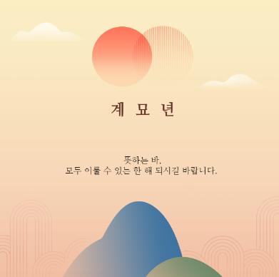 - 계묘년 새해 좋은 기운 받으셔서 2023년 승승장구하는 한 해 보내시기를 바랍니다. 작년에 베풀어 주신 은혜에 진심으로 감사드리며 풍요로운 설날 보내시길 바랍니다.