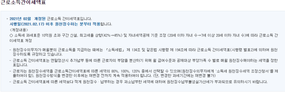 이 중 원하는 비율을 선택하면 해당 세율에 따른 근로소득세를 확인할 수 있습니다.