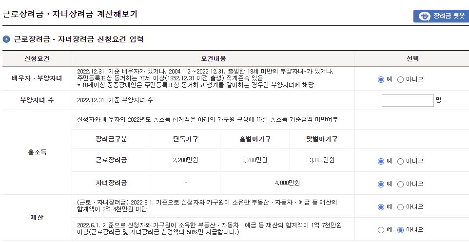 더불어 근로장려금 계산기를 통해서도 근로장려금 신청자격 여부를 확인해 볼 수 있는데요.
