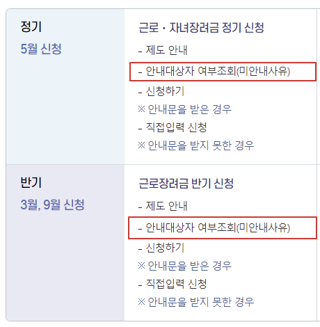 근로장려금은 반기 신청과 정기 신청이 있습니다. 근로장려금 반기 신청은 상반기, 하반기 소득파악이 가능한 근로소득자에 한하여 신청할 수 있으며, 반기, 정기중 선택하여 신청이 가능합니다.