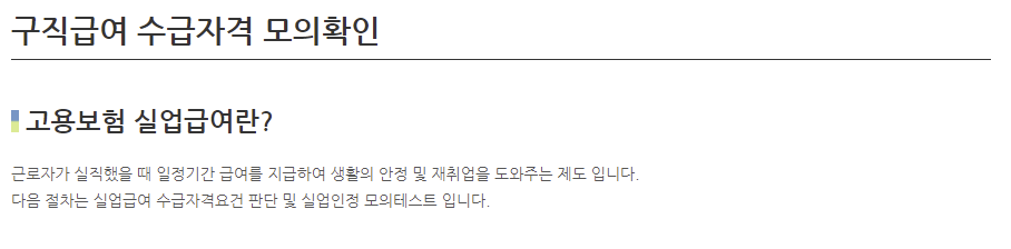 따라서 실제로 수급자격 확인하기 위해서는 고용노동부 홈페이지 자가진단 및 모의계산을 통해서 확인해 보시기 바랍니다.