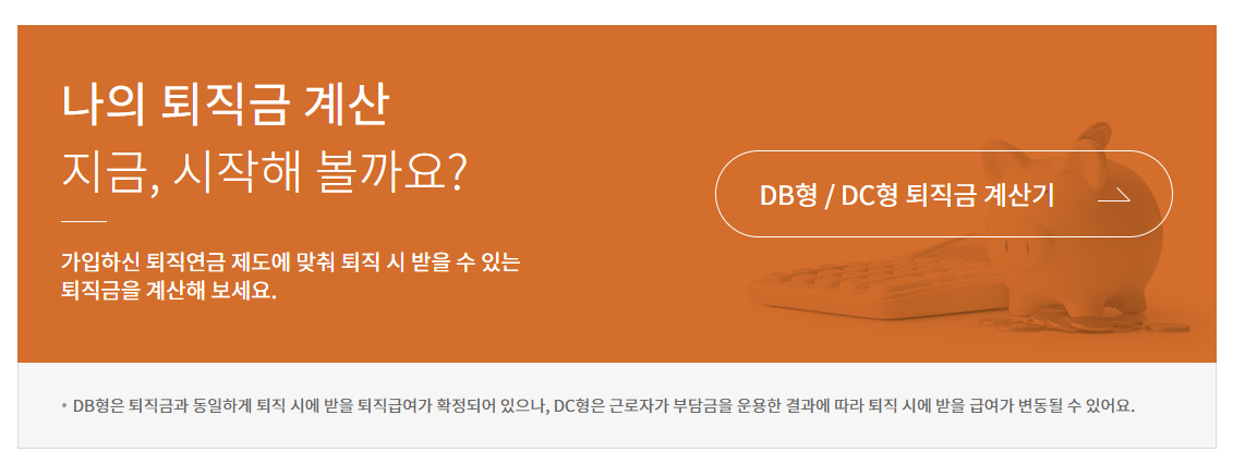 퇴직시 내가 받을 수 있는 퇴직연금은 얼마인지 계산해 보고 싶다면 퇴직연금 수령액 계산기를 통해서 예상되는 퇴직연금을 간편하게 계산해 볼 수 있습니다.