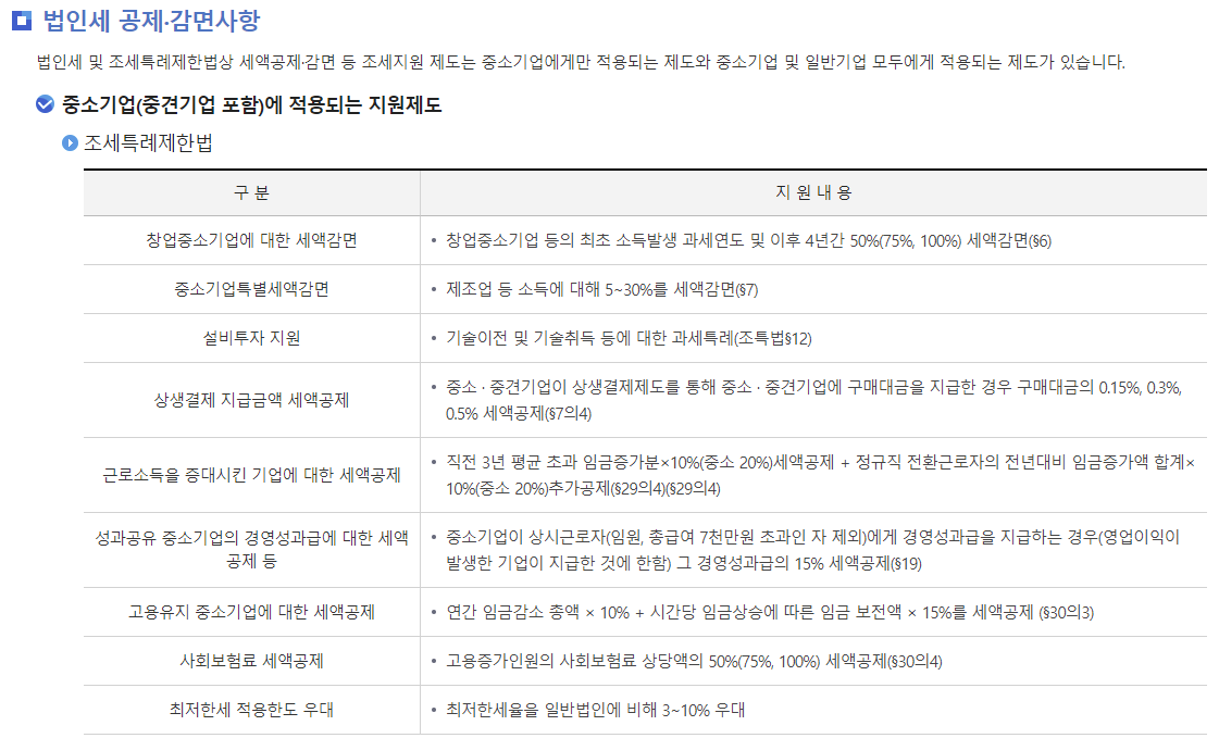 법인세율 감면대상으로는 벤처기업을 창업하였다면 최대 5년 동안 법인세 50 % 감면, 취득세 72% 감면, 재산세 3년간 면제 등의 혜택이 있습니다.