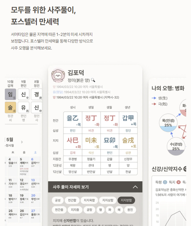 사주풀이 도우미 외에 만세력 달력 보기 할 수 있는 곳은 포스텔러입니다. 생년월일과 태어난 시간을 통해서 만세력 사주풀이 할 수 있습니다.