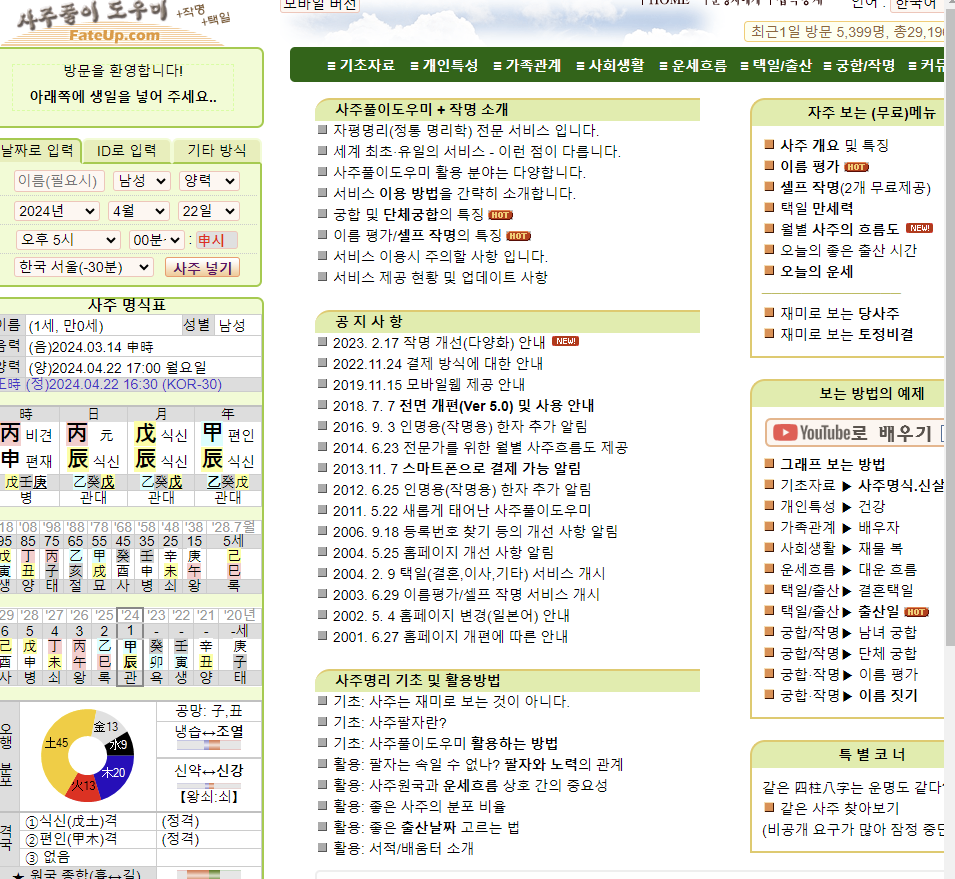 사주팔자에 어떤 오행이 많은지 적은 지를 알면 성향을 알 수 있는데요. 그러기 위해서는 만세력을 이용해서 사주팔자로 변환해야 합니다.