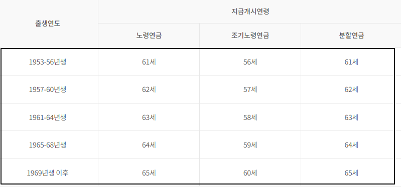 - 1953~56년생 국민연금 수령나이는 61세입니다.