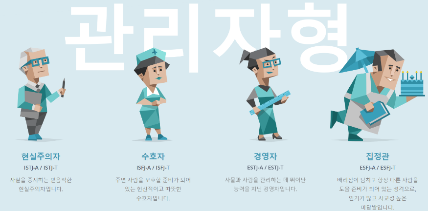 4개의 알파벳 조합을 통해 16가지 성격 유형으로 나누어집니다. 예를 들어, ISTJ는 신중하고 현실적인 질서와 체계를 중요시하는 보수적인 성향을 가지고 있습니다. 그들은 현실을 기반으로 한 사실 중심적인 결정을 선호합니다.