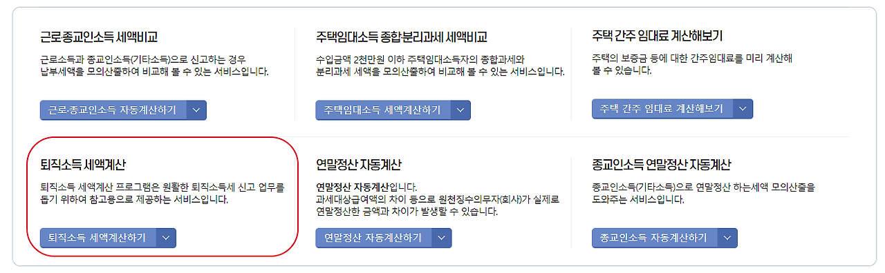 퇴직금 세금 계산은 근로자의 근속연수와 퇴직금에 따라 달라지기 때문에 국세청 홈택스에서 제공하는 퇴직금 세금 자동계산을 활용하는 것이 좋습니다.