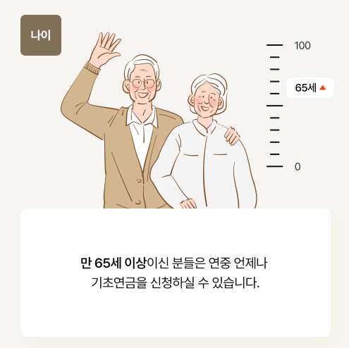 노인 기초연금은 만 65세 이상이고 대한민국 국적을 가지고 있는 어르신 중 소득인정액이 선정기준액 이하이면 수급자격이 됩니다.