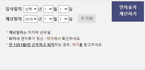 연차휴가일수 계산 및 계산기 (바로가기)