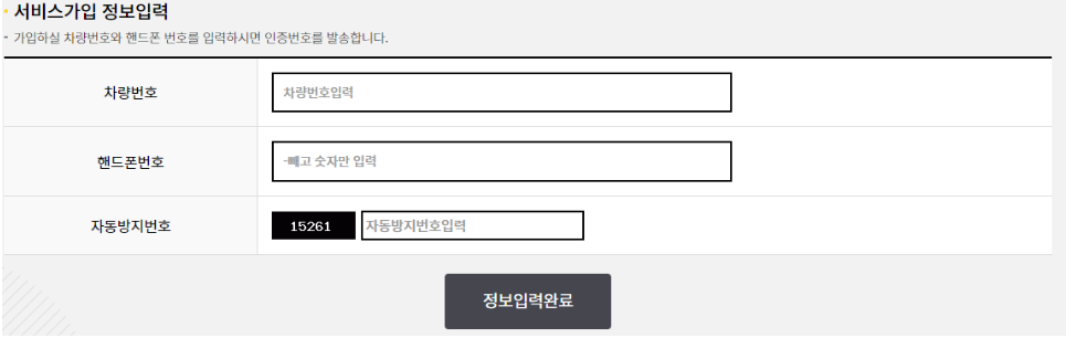 앱 실행 후 지역을 선택, 차량번호, 이름, 전화번호를 입력하면 신청이 완료됩니다.