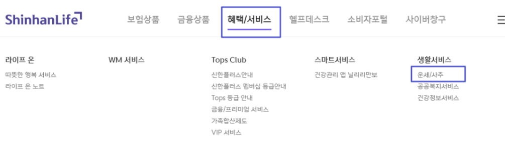 신한생명 사주풀이 서비스는 무료로 보실 수 있습니다. 운세 종류는 월간 종합운세, 사주풀이, 토정비결, 평생운세 등이 있습니다.
