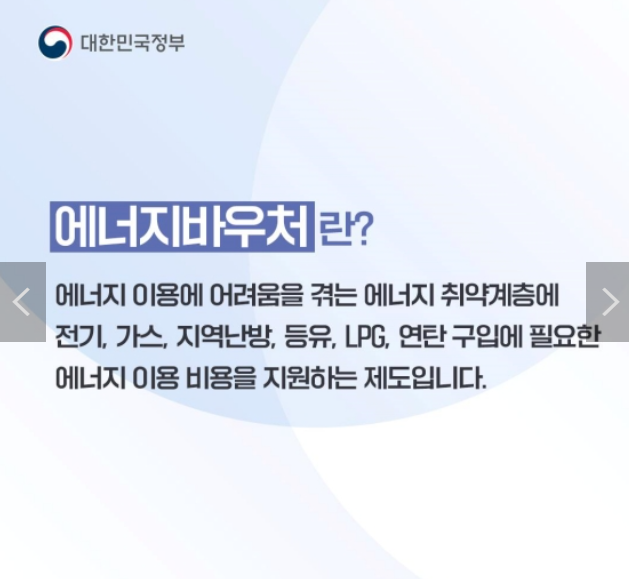 에너지 바우처란 에너지 취약계층이 전기, 도시가스, 지역난방, 등유, 연탄을 구입할 수 있도록 지원하는 제도입니다.