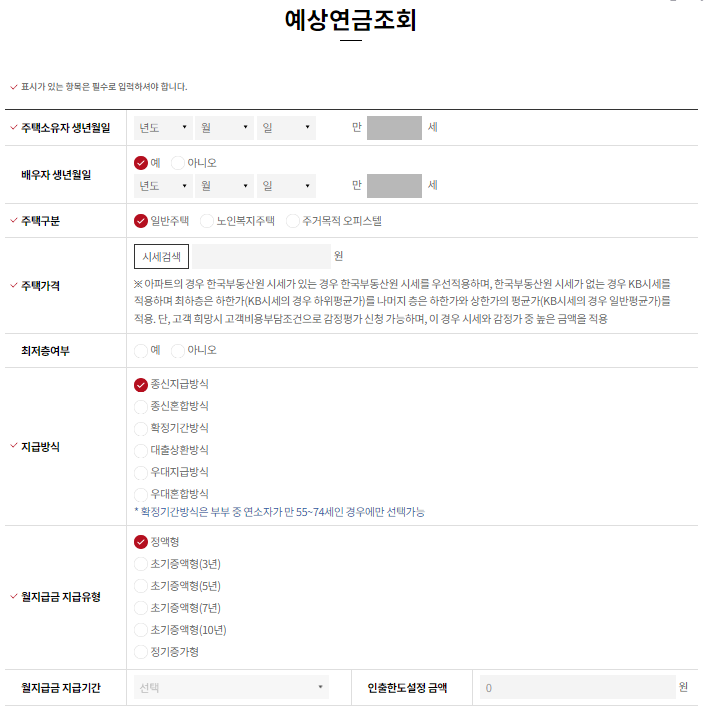 주택연금 수령금액 계산