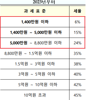 2023년 종합소득세율 개정이 되었지만 올해 종합소득세 신고 시에는 개정되기 전 종합소득세율이 적용됩니다. 개정된 종합소득세율은 내년 연말정산부터 적용됩니다. 이번 시간에는 종합소득세율에 대하여 알려드리겠습니다.
