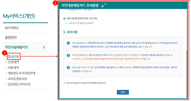 2. 메인화면에서 내일배움카드 발급 신청 클릭