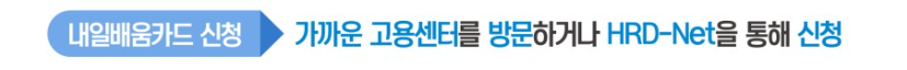 내일배움카드 발급 신청 방법으로는 가까운 고용센터를 방문하거나 고용노동부가 운영하는 HRD Net 홈페이지에서 신청할 수 있습니다.