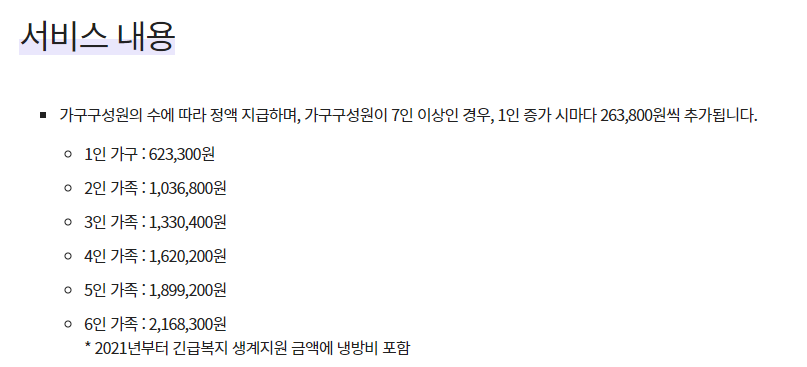 긴급복지 생계지원금 지원금액은 가구 구성원에 따라 달라집니다.