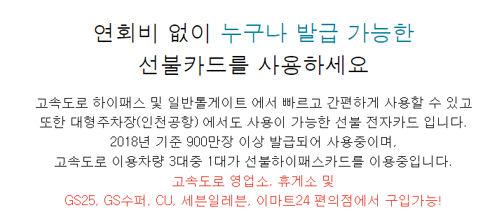 고속도로에서의 운전자이 편의를 돕는 하이패스는 요즘 차량에는 옵션으로 장착되어 나오는 경우가 많지만 옵션으로 하이패스가 장착되지 않은 차량은 하이패스카드를 따로 구입해야 합니다.