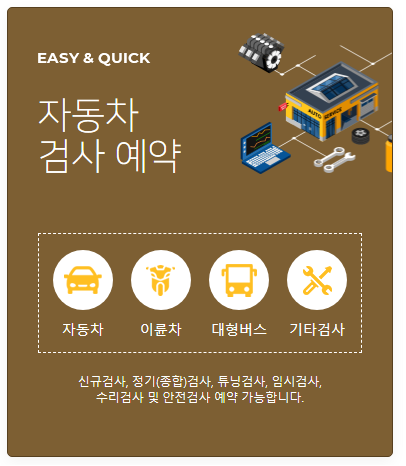 자동차검사기간 조회뿐만 아니라 자동차검사 예약도 바로 가능합니다. 자동차검사기간이 얼마 남지 않았다면 바로 자동차검사도 예약해 보시기 바랍니다.