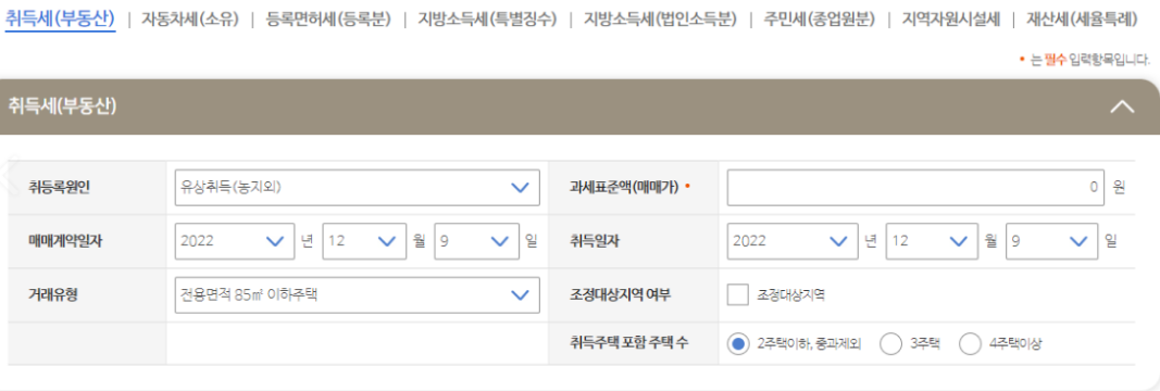 그렇기 때문에 위택스에서 제공하는 취득세 등록세 계산기를 이용해서 취득세 등록세를 계산하는 것이 가장 좋은 방법입니다.