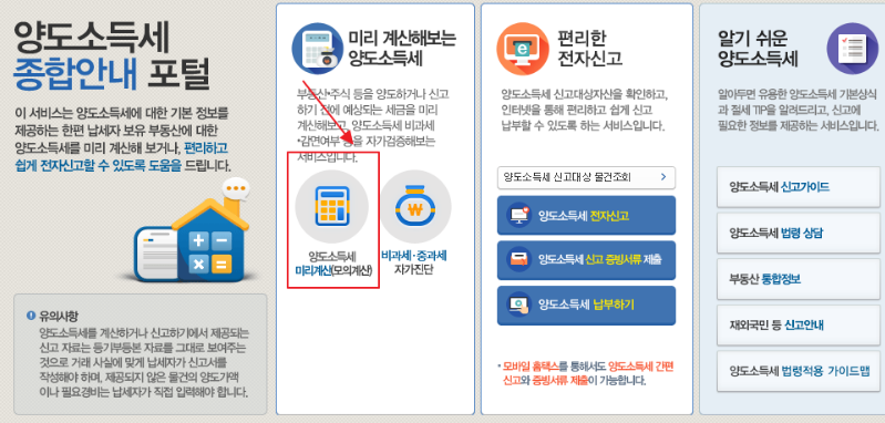 양도소득세 자동계산을 이용하면 누구나 간단하게 양도소득세를 계산할 수 있기 때문에 양도소득세 계산을 하고 싶다면 홈택스에서 제공하는 양도소득세 자동계산기를 활용해서 계산해 보시기 바랍니다.